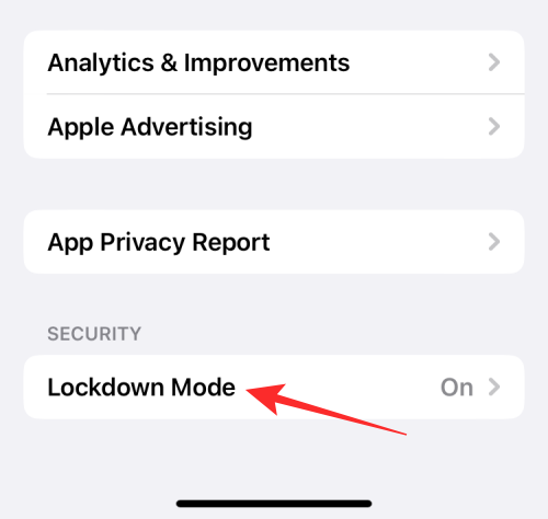 在“隐私与安全”中,向下滚动到屏幕底部,然后选择“锁定模式”。